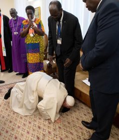 At this time, another symbolic image overlaps that of the Notre Dame blaze: a scene with Pope Francis, Vicar of Christ, kissing the feet of three Sudanese Muslim leaders, asking them to extinguish the fires of war once and for all. This happened on April 11th at the end of a spiritual retreat in the Vatican, conceived by the (schismatic) Archbishop of Canterbury, Justin Welby. Immediately afterwards, on the first day of Holy Week, the French cathedral the most famous and most visited in the world after St. Peters was consumed by flames.