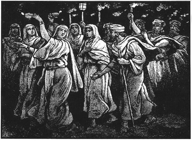 Additionally, Jewish wedding customs in the 1st century, at the time of Christ, were a perfect parallel to the pre-tribulational rapture: the groom came and "purchased" his bride, making a binding, unbreakable agreement to return for her, he then went away to prepare a place for her in his father's house, and then around one year later returned for her with a "shout". The groom and the bride went into the bridal chamber in the father's house where they remained hidden away for seven days while wedding guests celebrated outside.