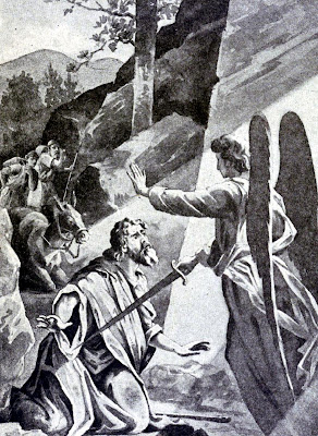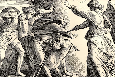 21 Balaam got up in the morning, saddled his donkey and went with the Moabite officials. 22 But God was very angry when he went, and the angel of the Lord stood in the road to oppose him. Balaam was riding on his donkey, and his two servants were with him. 23 When the donkey saw the angel of the Lord standing in the road with a drawn sword in his hand, it turned off the road into a field. Balaam beat it to get it back on the road.