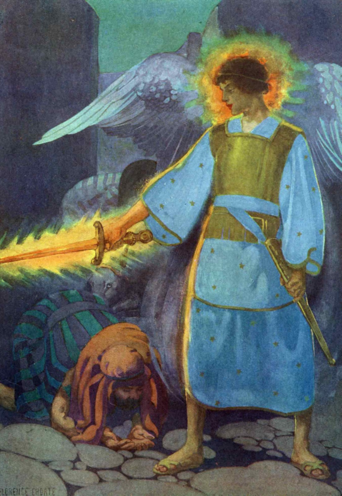 31 Then the Lord opened Balaams eyes, and he saw the angel of the Lord standing in the road with his sword drawn. So he bowed low and fell facedown.