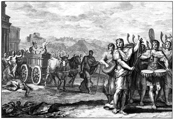 1 David again brought together all the able young men of Israelthirty thousand. 2 He and all his men went to bring up the ark of God, which is called by the name of the Lord Almighty, who is enthroned between the cherubim on the ark. 3 They set the ark of God on a new cart and brought it. Uzzah and Ahio, sons of Abinadab, were guiding the new cart 4 with the ark of God on it. 5 David and all Israel were celebrating with all their might before the Lord, with castanets, harps, lyres, timbrels, sistrums and cymbals.