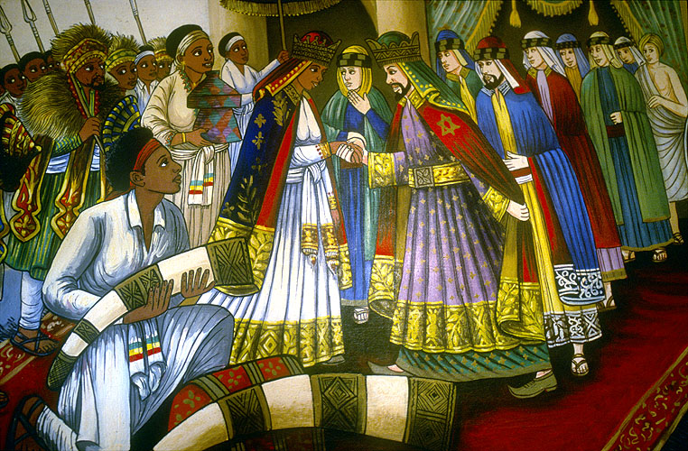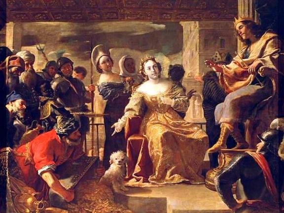 1 When the queen of Sheba heard about the fame of Solomon and his relationship to the Lord, she came to test Solomon with hard questions. 2 Arriving at Jerusalem with a very great caravanwith camels carrying spices, large quantities of gold, and precious stonesshe came to Solomon and talked with him about all that she had on her mind. 3 Solomon answered all her questions; nothing was too hard for the king to explain to her. 4 When the queen of Sheba saw all the wisdom of Solomon and the palace he had built, 5 the food on his table, the seating of his officials, the attending servants in their robes, his cupbearers, and the burnt offerings he made at the temple of the Lord, she was overwhelmed.