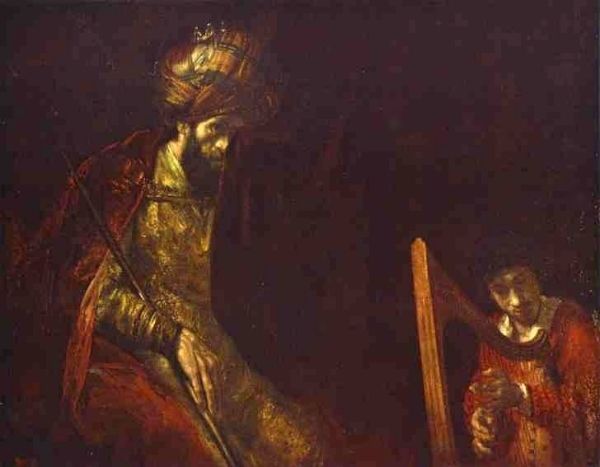 " David Playing The Harp Before Saul" Rembrandt van Rijn |