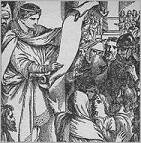 S e q u e n c i n gThe pace here may seem appallingly snail-like to those eager to see their favorite events illustrated. My commission is to search for art on each Bible passage in sequence: if I find enough, then it becomes the next installment, even if undramatic (but where there is little or no art, that Bible passage goes untold here).