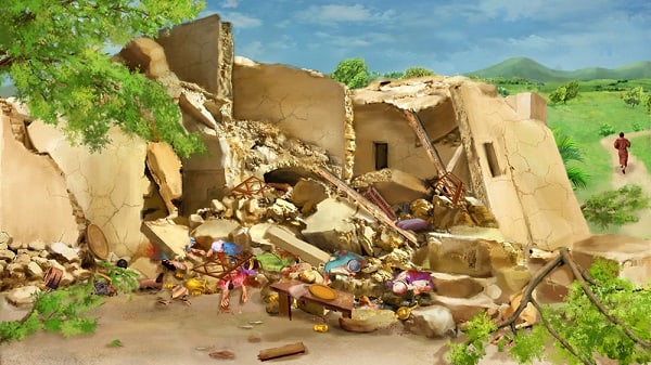 18 While he was still speaking, yet another messenger came and said, “Your sons and daughters were feasting and drinking wine at the oldest brother’s house, 19 when suddenly a mighty wind swept in from the desert and struck the four corners of the house. It collapsed on them and they are dead, and I am the only one who has escaped to tell you!”