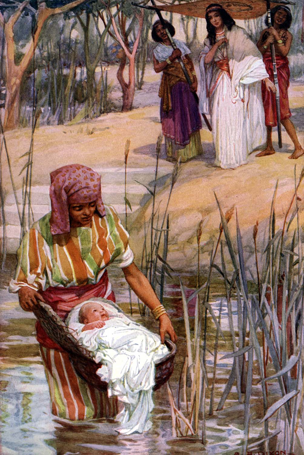 E X O D U S CHAPTERS 1 & 2 Now the Israelites were fruitful and multiplied greatly and became exceedingly numerous. Then a new king said to his people, “The Israelites have become much too numerous for us.” So they put slave masters over them to oppress them with forced labor and worked them ruthlessly. Then Pharaoh gave this order to all his people: “Every boy that is born you must throw into the Nile, but let every girl live.” Now a man of the house of Levi married a Levite woman, and she became pregnant and gave birth to a son. She hid him for three months. But when she could hide him no longer, she got a papyrus basket for him and coated it with tar and pitch. Then she placed the child in it and put it among the reeds along the bank of the Nile. His sister stood at a distance to see what would happen to him. Then Pharaoh’s daughter went down to the Nile to bathe. She saw the basket among the reeds and sent her slave girl to get it. She opened it and saw the baby. He was crying, and she felt sorry for him. “This is one of the Hebrew babies,” she said. Then his sister asked Pharaoh’s daughter, “Shall I go and get one of the Hebrew women to nurse the baby for you?” “Yes, go,” she answered. And the girl went and got the baby’s mother. Pharaoh’s daughter said to her, “Take this baby and nurse him for me, and I will pay you.” So the woman took the baby and nursed him. When the child grew older, she took him to Pharaoh’s daughter and he became her son. She named him Moses. New International Version ©1984, Abrdgd, EMPHASES Added