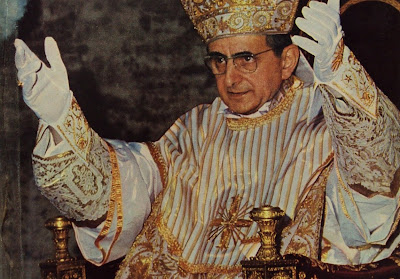The Pope will enter St. Peter's Basilica carried on the sede gestatoria not used since the short pontificate of Pope John Paul I, suspected of being murdered by the wolves Pope Benedict XVI warned about. As for papal vesture, Monsignor Guido Marini verified that "the Pope will be properly dressed." This will include the fanon, buskins and gloves as shown in this photo of Pope Paul VI. In fact, he will wear these exact vestments as shown including the mitre as these were used by Pope Paul VI the last Pontiff to celebrate the most solemn and ancient liturgy of the Latin Rite in St. Peter's Basilica.