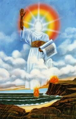 5 Then the angel I had seen standing on the sea and on the land raised his right hand to heaven. 6 And he swore by him who lives for ever and ever, who created the heavens and all that is in them, the earth and all that is in it, and the sea and all that is in it, and said, “There will be no more delay! 7 But in the days when the seventh angel is about to sound his trumpet, the mystery of God will be accomplished, just as he announced to his servants the prophets.”
