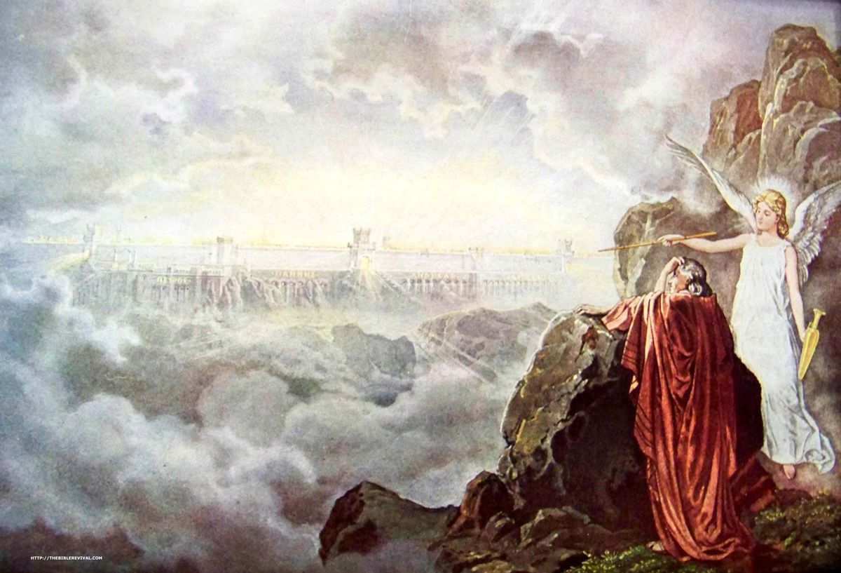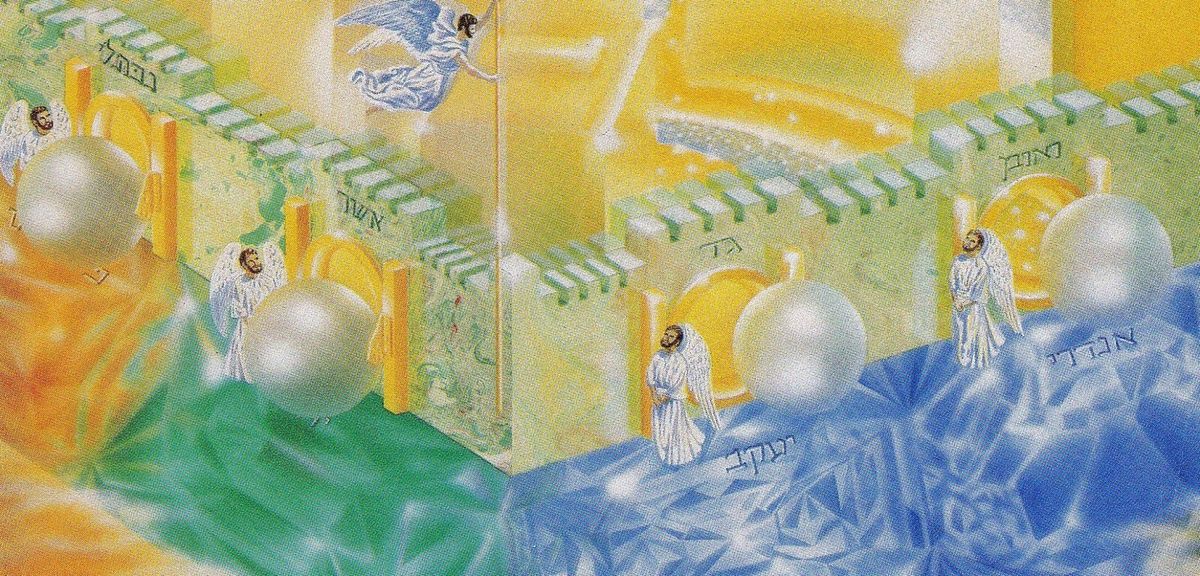 9 One of the seven angels who had the seven bowls full of the seven last plagues came and said to me, “Come, I will show you the bride, the wife of the Lamb.” 10 And he carried me away in the Spirit to a mountain great and high, and showed me the Holy City, Jerusalem, coming down out of heaven from God. 11 It shone with the glory of God, and its brilliance was like that of a very precious jewel, like a jasper, clear as crystal. 12 It had a great, high wall with twelve gates, and with twelve angels at the gates. On the gates were written the names of the twelve tribes of Israel. 13 There were three gates on the east, three on the north, three on the south and three on the west. 14 The wall of the city had twelve foundations, and on them were the names of the twelve apostles of the Lamb.