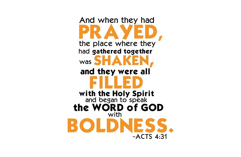 “‘Why do the nations rage and the peoples plot in vain? The kings of the earth rise up and the rulers band together against the LORD and against His Anointed One.Indeed, Herod and Pontius Pilate met together with the Gentiles and the people of Israel in this city to conspire against Your Holy Servant JESUS, Whom You anointed. They did what Your power and will had decided beforehand should happen. Now, LORD, consider their threats and enable Your servants to speak Your WORD with great boldness. Stretch out Your hand to heal and perform signs and wonders through the Name of your Holy Servant JESUS.”