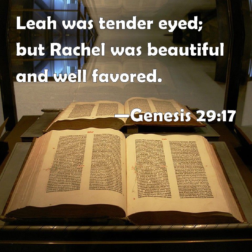 16 Now Laban had two daughters; the name of the older was Leah, and the name of the younger was Rachel. 17 Leah had weak[a] eyes, but Rachel had a lovely figure and was beautiful. 18 Jacob was in love with Rachel and said, “I’ll work for you seven years in return for your younger daughter Rachel.”