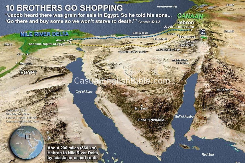 3 Then ten of Joseph’s brothers went down to buy grain from Egypt. 4 But Jacob did not send Benjamin, Joseph’s brother, with the others, because he was afraid that harm might come to him. 5 So Israel’s sons were among those who went to buy grain, for there was famine in the land of Canaan also.