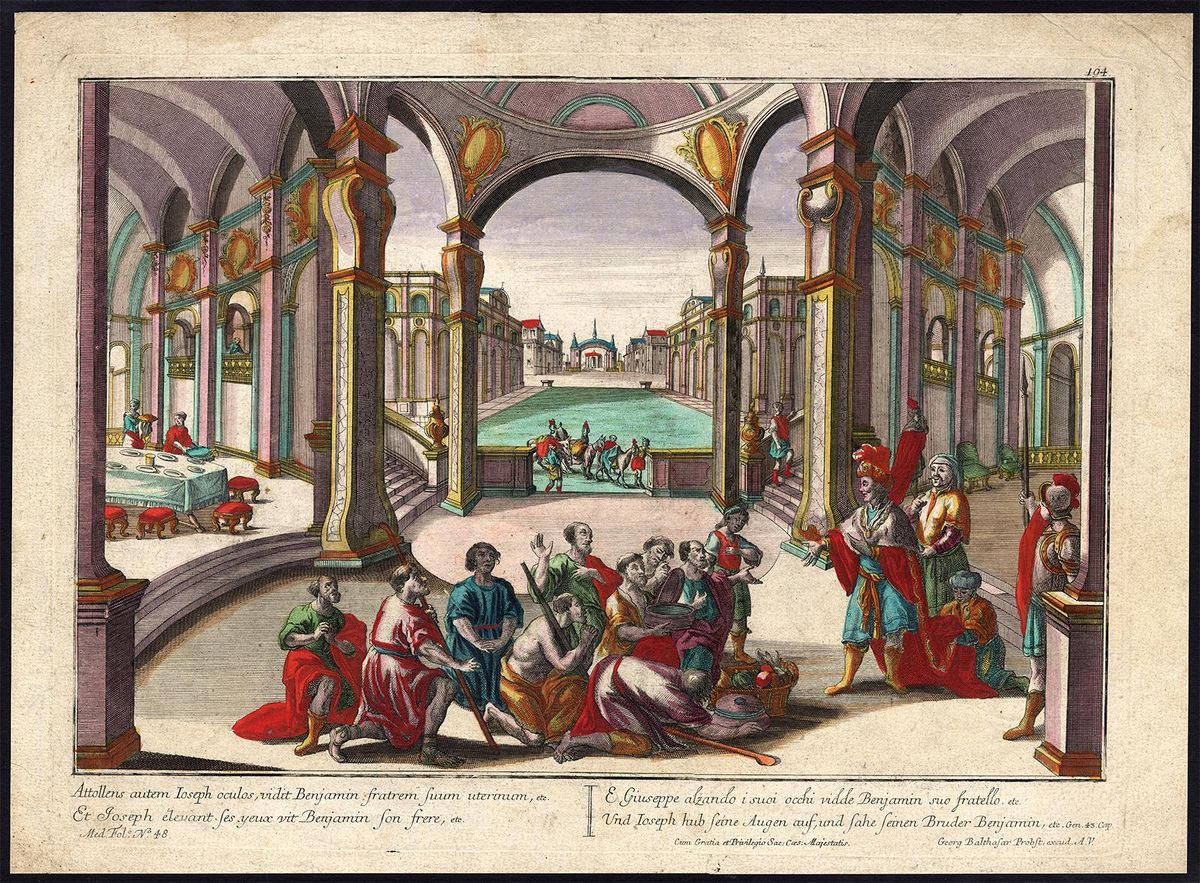 32 They served him by himself, the brothers by themselves, and the Egyptians who ate with him by themselves, because Egyptians could not eat with Hebrews, for that is detestable to Egyptians. 33 The men had been seated before him in the order of their ages, from the firstborn to the youngest; and they looked at each other in astonishment. 34 When portions were served to them from Joseph’s table, Benjamin’s portion was five times as much as anyone else’s. So they feasted and drank freely with him.