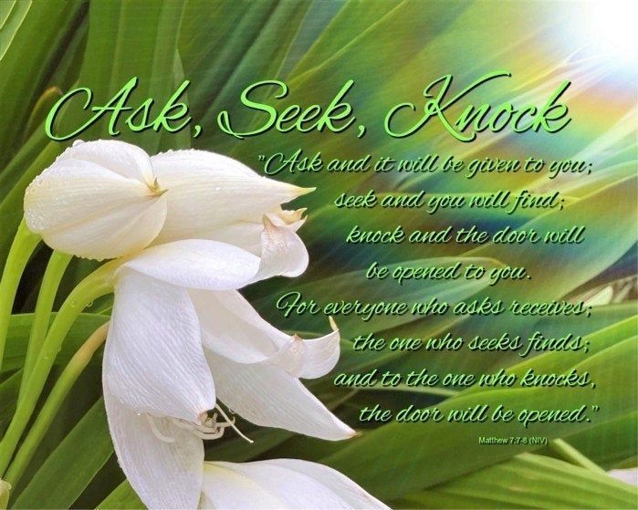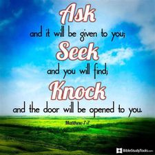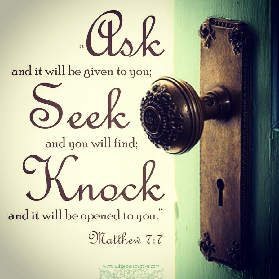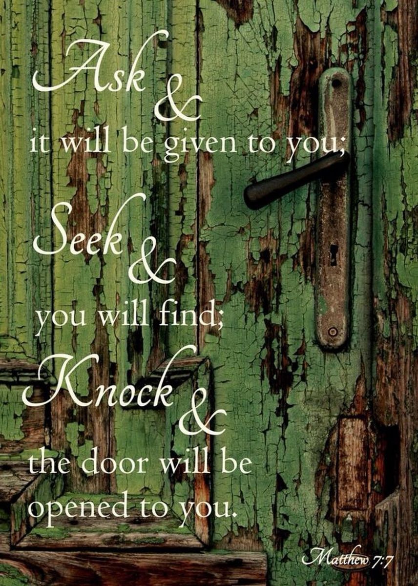 7 “Ask and it will be given to you; seek and you will find; knock and the door will be opened to you. 8 For everyone who asks receives; the one who seeks finds; and to the one who knocks, the door will be opened.