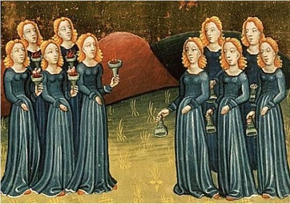 1. Then shall the kingdom of heaven be likened unto ten virgins, which took their lamps, and went forth to meet the bridegroom.
