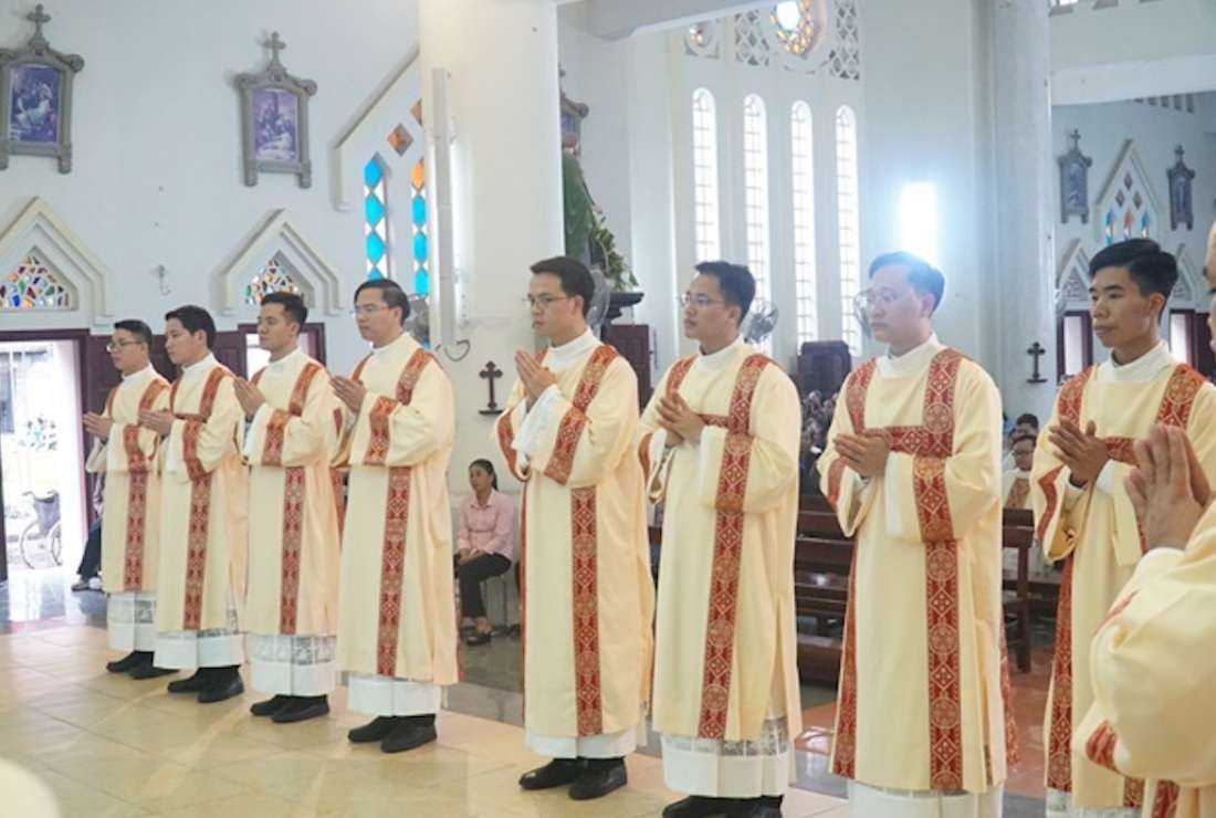 New deacons during their ordination at Son Loc Cathedral in Hung Hoa Diocese on Feb. 14.
