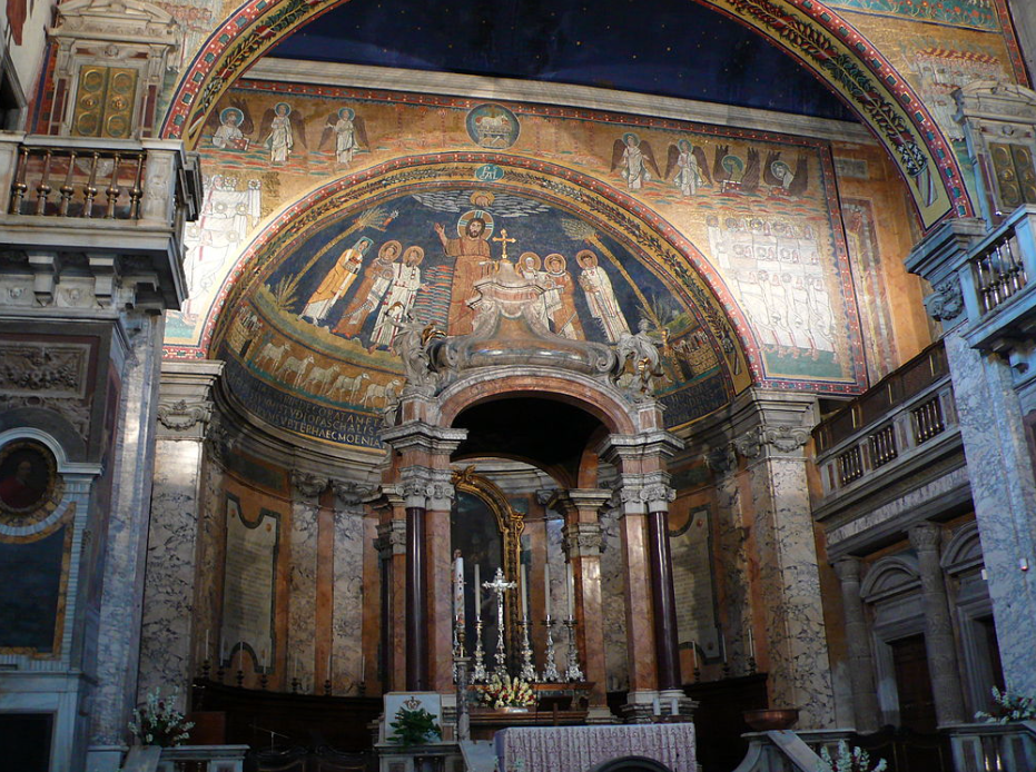 On the altar, dressed in sacred vestments, Marko Rupnik concelebrates Mass in the Basilica of Santa Prassede in Rome, a few meters from Santa Maria Maggiore.