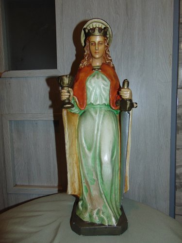 Jadwiga (1373-1399) was the daughter of Louis the Great of Poland and Hungary. Louis had no male heir; he had three daughters, the youngest of whom was Jadwiga. Catherine, the eldest, died in 1378 and Mary was crowned king of Hungary. Jadwiga became Queen of Poland because the Polish nobles refused to have a ruler who lived outside the country. She was crowned king of Poland in 1384. She was called king either to emphasize her status as ruler in her own right or to prevent her husband taking the title. Jadwiga had been betrothed to William of Habsburg and had lived in Austria for two years. The couple seemed to have been fond of one another. However some of the Polish nobles felt that William would not be a strong enough ruler and it was suggested that Jadwiga marry Jagiellon, Duke of Lithuania. Both Poland and Lithuania faced a common enemy in the Teutonic Knights. They had once been a crusading Oorder and had intended to Christianize Lithuania but they were now independent rulers in lands on the Baltic and a threat to both the Kingdom of Poland and the Grand Duchy of Lithuania. Jagiellon was a pagan, but he promised to convert himself and his people to Christianity. It is said that Jadwiga prayed long and hard before a crucifix in Wawel cathdral in Kracow and that Christ spoke to her from the cross, saying: "Do what you see."