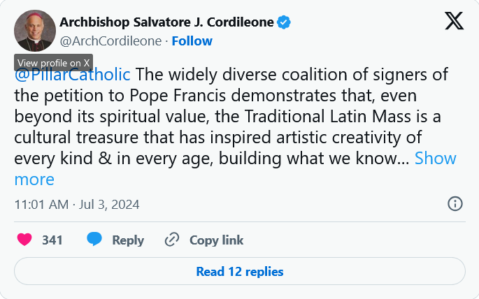 That came from a credible rumour published by our friends at Rorate back on June 17th. While that was brewing, Viganò got the axe from the Vatican, and a different report denied any existence of a new TLM suppression.