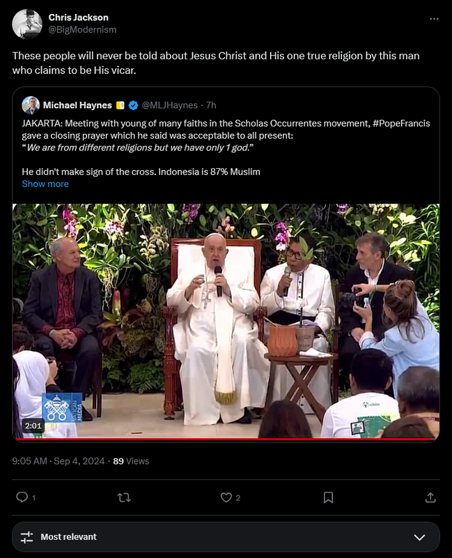 Francis didn't invoke the Holy Trinity, the sole source of anything good, and he didn't make the sign of the cross, the source of all blessings.