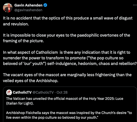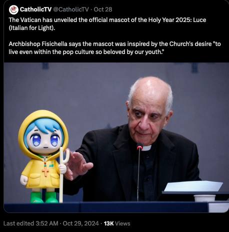 Fisichella also emphasized that the mascot was created to draw more young people into the Church through “pop culture.” He hoped that having exhibits at these expos “will allow us to speak to younger generations about the theme of hope, which is more central than ever in the evangelical message,” while adding that the mascot underscores the Church’s will “to live even within the pop culture so beloved by our youth.”