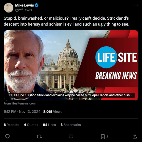 How many US Bishops listened to the irrelevant/removed/expelled Strickland? Factual answer = Zero.