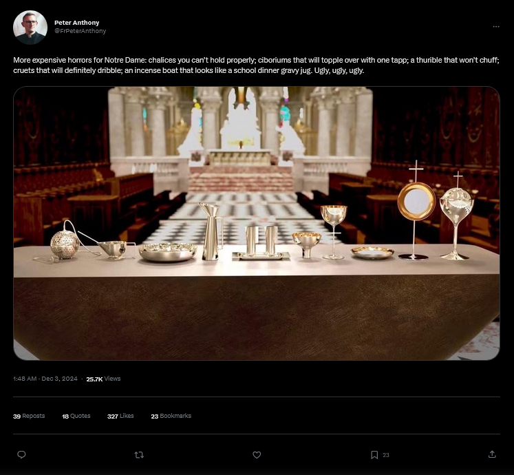 What is this hideous mezzaluna altar in the newly redone Notre-Dame de Paris? Will the wreckovation spirit not depart until the last Boomer in the Catholic Church has died?