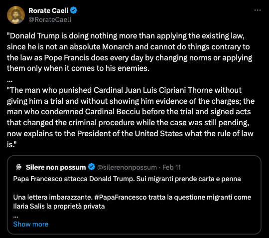 I wonder if this has something to do with the Pope’s statements about Trump?