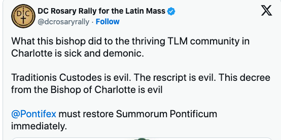 The DC Rosary Rally for the Latin Mass X account decried the decision as “evil” and called for Pope Leo XIV to “restore Summorum Pontificum immediately.”