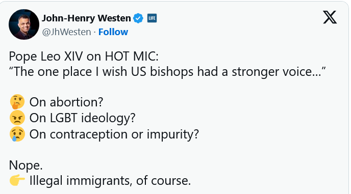 I had high hopes for Pope Leo. Unfortunately, he seems to be another leftist dope.