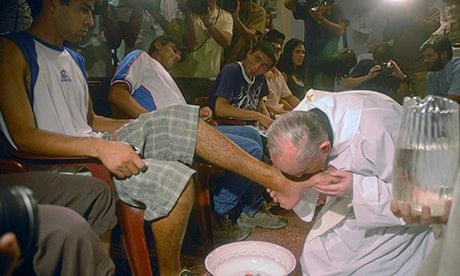 Above: Pope Francis washing the feet of migrant criminal offenders in Rome.