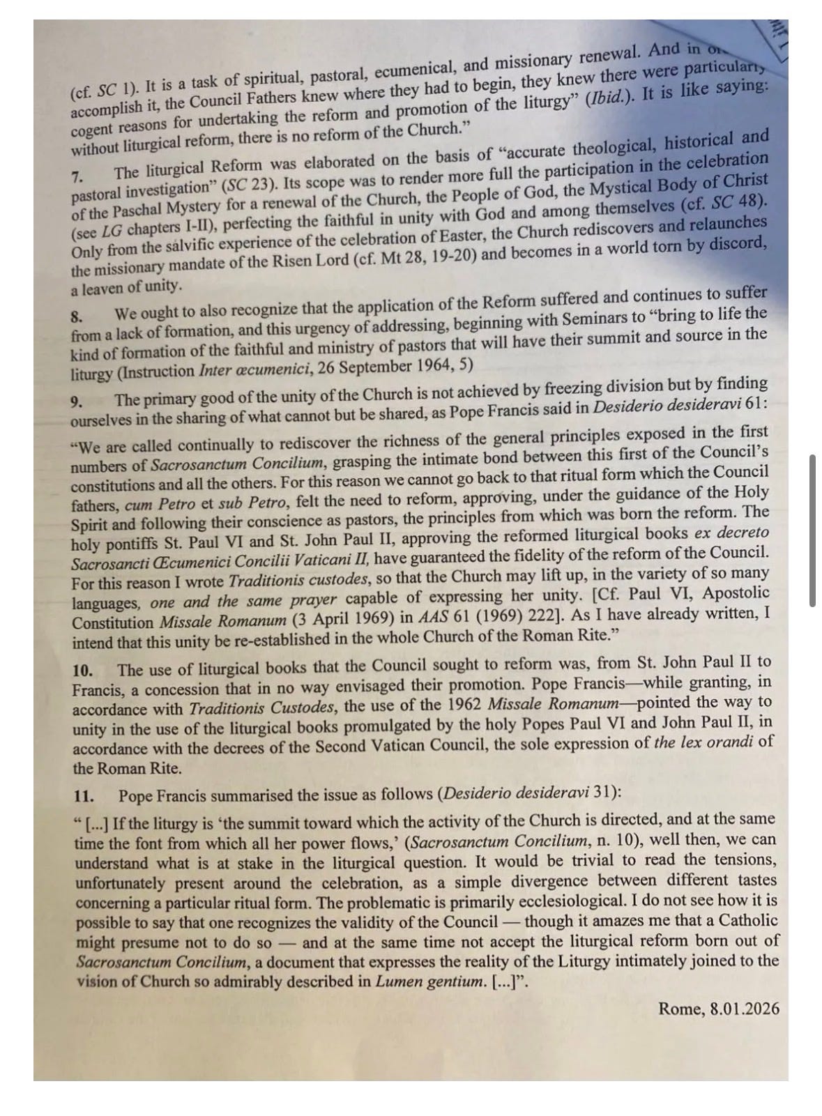 It is also strategically useful, because it converts a liturgical dispute into a moral and ecclesial indictment. It makes criticism of the reform impossible without personal guilt. It shifts the debate from the content of the rites to the supposed pathology of the critics.
