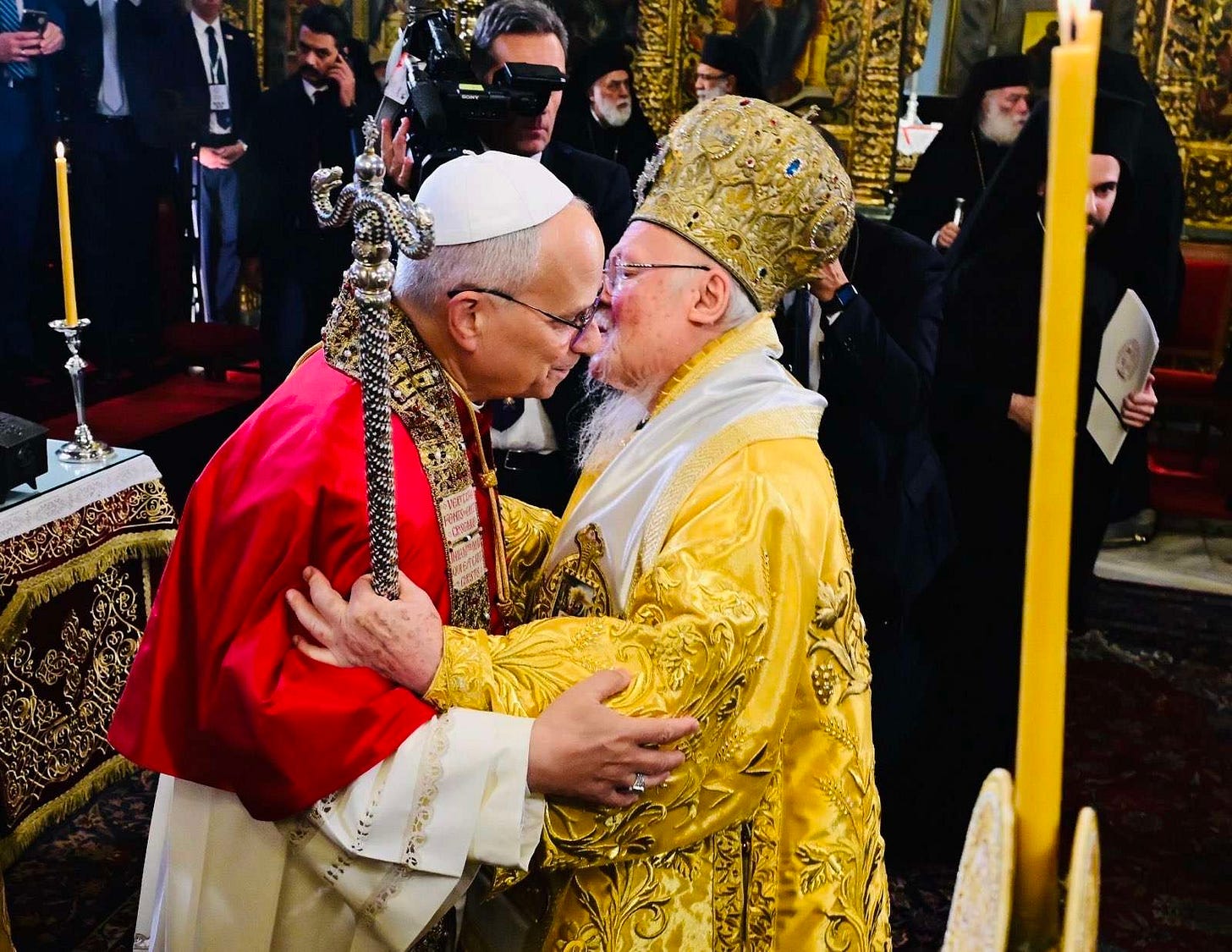(Leo kissing schismatic Ecumenical Patriarch Bartholomew)