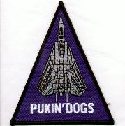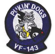 ![]() Pukin' Dogs ![]() Clic on pic for high resolution ![]() - First, about the name: In late 1980s and early 1990s, the squadron's unique and somewhat irreverent nickname was the subject of many heated debates. Some thought the name was in poor taste and questioned the Navy's judgment on allowing a fighter squadron to carry such an appellation. Of course, there were many Dog supporters who vehemently disagreed. The decision came down from the Navy was to have VF-143 drop the Pukin' part, thus the squadron is now officially known only as the Dogs. Naturally this upset a lot of former and current Dogs, and many Dog lovers. However, in the era of pervasive political correctness, the change was inevitable. The good news is that sometime in late 1996, VF-143 was once again officially recognized as the Pukin' Dogs by the Navy. It seems that the PC police has lost a round! May the Dogs puke forever! The History of the VF-143 World Famous Pukin Dogs. ![]() The world Famous Pukin Dogs were originally commissioned in 1949 as VF-871, a reserve squadron, and were known as the Griffins. From their home at NAS Alameda, the Griffins were called to active duty on 20 July, 1950. The squadron took the F4U-4 Corsair to war in Korea from the decks of the USS PRINCETON (CV 37) in early 1951 and the USS ESSEX (CVA 9) in 1952. During the next eleven years, the squadron changed aircraft and designations twice; designated as VF-123, flying both the F9F-2 Panther and F9F-8 Cougar, and then as VF-53, flying the F3H-2 Demon. On 20 June, 1962, the squadron was redesignated VF-143 and transitioned to the F4H-1 Phantom II ( later redesignated the F-4B). VF-143 first went to sea aboard USS CONSTELLATION in February 1963, for a WESTPAC cruise. Operating as part of CVW-14, the following year, the squadron became involved in the Gulf of Tonkin incident and flew in the Pierce Arrow attacks on North Vietnamese naval facilities on 5 August 1964. In the succeeding years, the Pukin Dogs moved on to the F-4J and recorded seven combat deployments to Vietnam. The squadron, stationed at NAS Mirimar, CA, flew massive air strikes and Combat Air Patrol (CAP) missions before trading in their Phantoms for Tomcats. On April 1, 1975, after completion of F-14A Tomcat transition training, the Pukin Dogs permanently moved to their present home at NAS Oceana, VA. As part of CVW-6, VF-143 made its first F-14 carrier deployment aboard USS AMERICA from 15 April to 25 October 1976. During this Mediterranean deployment, the squadron participated in Operation Fluid Drive, providing CAP for the evacuation of American citizens from Beirut in 1976. After a subsequent south Atlantic cruise (10 June to 19 July 1977) and Mediterranean cruise (29 September 1977 to 25 April 1978), the Pukin Dogs moved on to a new carrier and airwing. ![]() In the fall of 1978, VF-143 joined USS DWIGHT D. EISENHOWER (CVN 69) and Carrier Air Wing SEVEN. In 1979, they made IKEs first major deployment to the Mediterranean Sea from 16 January to 13 July. VF-143 and the IKE spent 152 days continuously at sea after replacing USS NIMITZ during the 1980 cruise. The squadron then made a brief Norlant cruise, between 17 August and 7 October, and participated in NATOs Exercise Ocean Adventure. During the following 1982 Mediterranean deployment, the Pukin Dogs, with three Tactical Air Reconnaissance Pod System (TARPS) equipped aircraft, once again provided CAP for the evacuation of American citizens from war-torn Beirut in June of that year. During the 1983 MED deployment, VF-143 TARPS played a vital role in providing the Multinational Peacekeeping Forces in Lebanon with invaluable intelligence of enemy troop movements and artillery positions in the mountains outside of Beirut. The Dogs completed 45 combat TARPS missions over Lebanon. VF-143 then made two Caribbean and Norlant cruises before returning to the IKE and the MED on 11 October 1984 where they again found themselves involved in a worsening Lebanon situation. After a lengthy break from sea operations, VF-143 returned to the IKE for a MED cruise from 29 February to 29 August of 1988. In 1989, the Dogs made the transition to the Navys newest Tomcat, the F-14B, with the new GE F110-400 series engines capable of producing up to 30,000 pounds of thrust each. The Pukin Dogs found 1990 to be a highly successful year as they won the FFARP trophy for the second consecutive year and achieved the highest score in FFARP history. VF-143 also won the Tactical Reconnaissance (TACRECCE) trophy, an unprecedented dual victory in the same year. The squadron was also nominated for the Navys 1990 Arleigh Burke Award and the 1990 Department of Defense Phoenix Award for aviation maintenance. ![]() The successes of 1990 became more evident in early 1991 when VF-143 was awarded COMNAVAIRLANTs 1990 Battle E as the Atlantic Fleets finest fighter squadron. In addition, the Pukin Dogs were awarded the Chief of Naval Operations Rear Admiral Joseph C. Clifton Award which designated VF-143 the Navys finest fighter squadron. Making history in May 1991, during the Air Wings second detachment to NAS Fallon, NV, the Dogs became the first fleet Tomcat squadron to drop live air-to-ground ordinance. In September, the squadron deployed to the Arabian Gulf in Support of Operation Desert Storm where new standards were set in joint operations between the Navy, Air Force, and numerous coalition air forces. The Pukin Dogs returned to the Gulf in October of 1991. The cruise took them into the North Atlantic and Norwegian Sea where NATO forces and the IKE Battle Group teamed up above the Arctic Circle for cold weather operations during TEAMWORK 92 In August 1992, the Pukin Dogs and the rest of Carrier Air Wing SEVEN were reassigned to the USS GEORGE WASHINGTON (CVN 73), the Navys newest aircraft carrier. VF-143 deployed on the GW on her maiden shakedown cruise, and then again for her very first Mediterranean deployment in May 1994, where she took part in the 50th annive