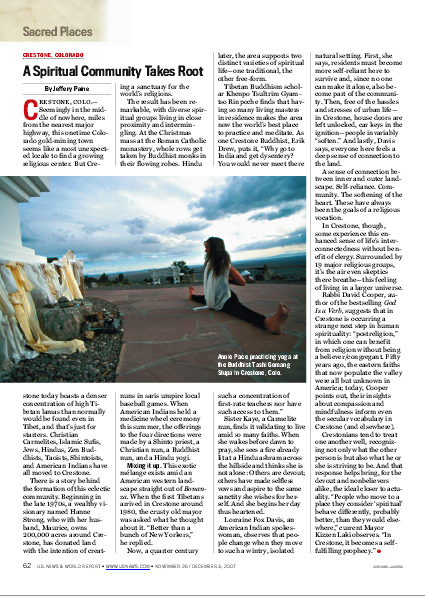 The Crestone/Baca community of centers of the world's religious traditions is currently the largest intentional interfaith ecumenical community in North America. The Foundation has also instigated its own solitary retreat hermitage project, providing the opportunity for individuals to focus on their contemplative practices.