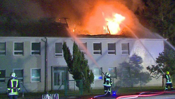 A week ago Sunday another refugee center burned down.....was to be used as refugee housing in the German seaside town of Trassenheide.