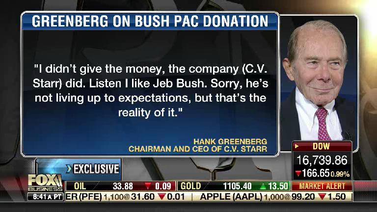 Right to Rise USA, a super PAC supporting the presidential candidacy of Jeb Bush, has received a $10 million donation from insurance executive Hank Greenberg, sources familiar with the situation told The Wall Street Journal on Thursday.