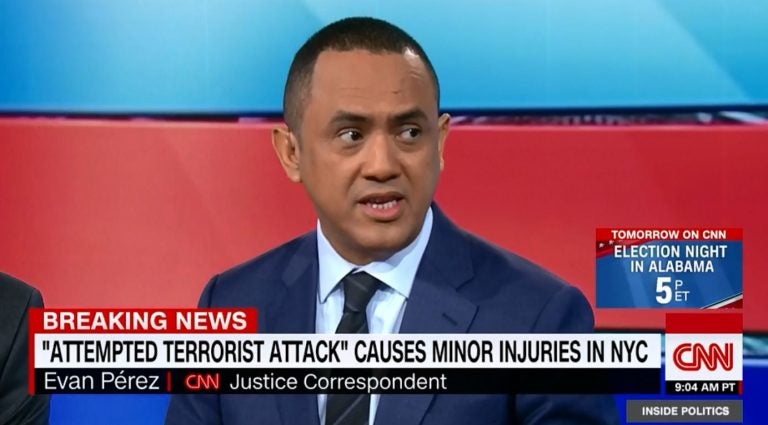 RUSH: Dadelut dadelut dadelut dadelut dadelut dadelut dadelut. Breaking news, ladies and gentlemen! It didnt take until 3 oclock. It didnt take til 3 oclock before somebody came forward and said the terrorist bombing in New York today was done out of anger at Trump moving our embassy to Jerusalem, and guess where it happened? It happened on CNN, and here is a portion of the report from their justice correspondent, Evan Perez, about a possible motive for this mornings terrorist bombing in the Nuevo Orc.