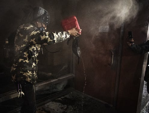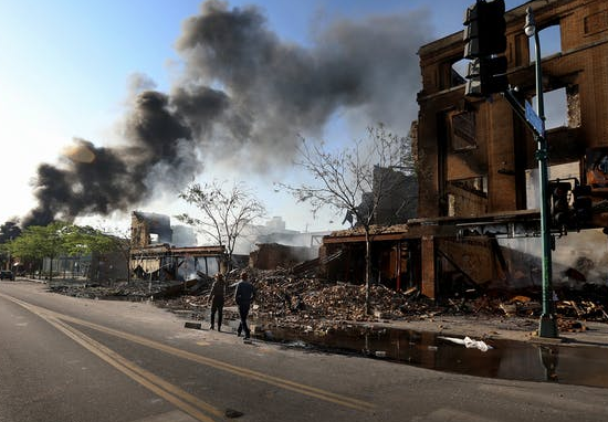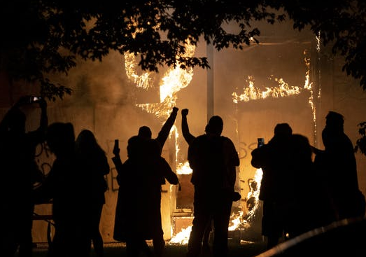 Agitators set the Wells Fargo on fire near the 5th Precinct.