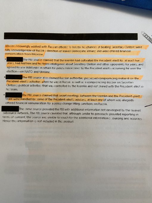 ..financial compensation. Mueller did not substantiate. Not credible enough for Intel Community to use in body of report, but FBI still used dossier 3 more times to renew @carterwpage surveillance warrant. Requested @ChuckGrassley @SenRonJohnson Released DNI