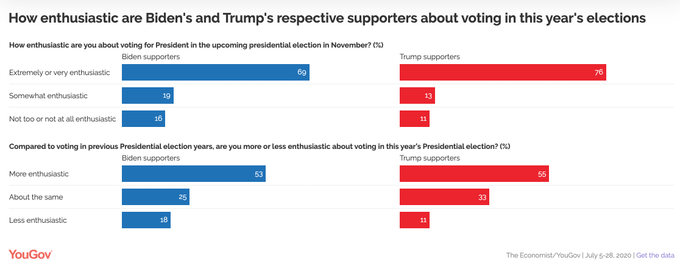 Add to that new polling from Economist/YouGov that shows the presidents supporters far more enthusiastic about him, and voting for him, than those of Bidens.