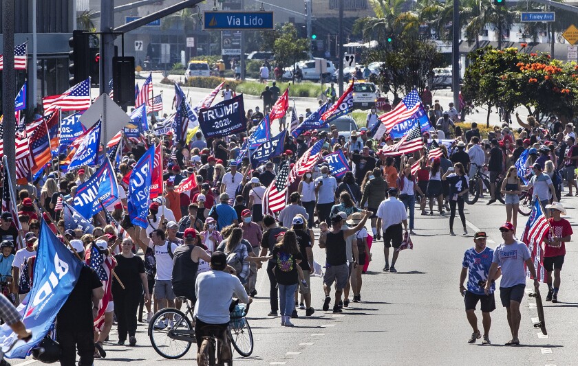 Massive crowd of @realDonaldTrump supporters greet his motorcade in Newport Peach, California.