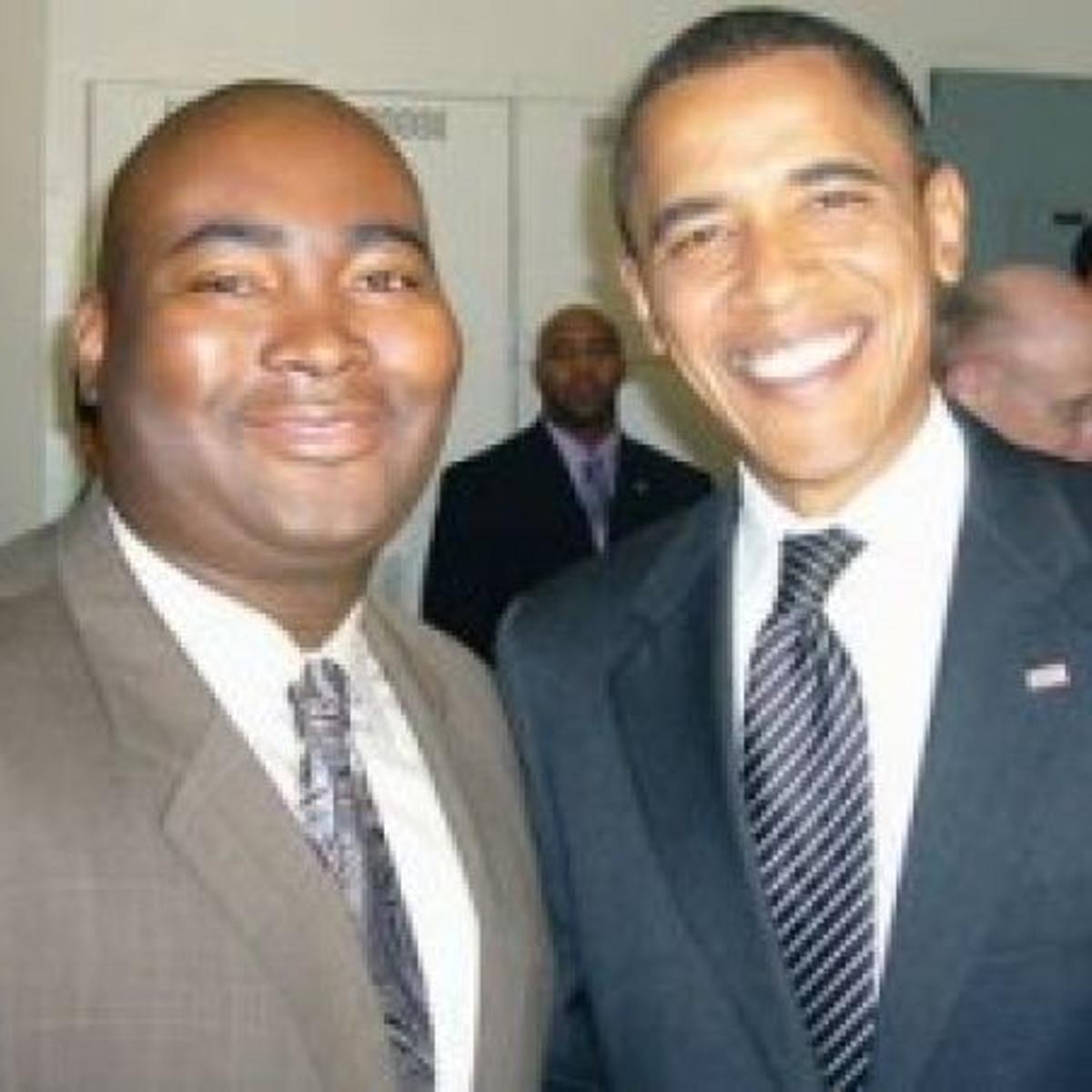 Democratic National Committee chairman Jaime Harrison annd scrawny Barack Hussein Obama/
