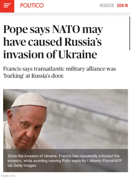 Pope Francis Slams The West For Its Grandstanding, Accuses NATO Of Provoking Russia