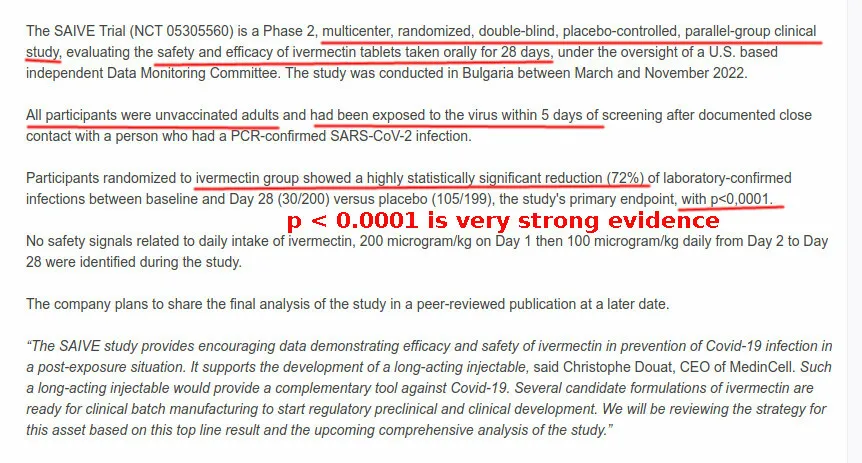 MedinCell conducted a randomized controlled trial of their version of Ivermectin and found that it reduces Covid infections by 72%!