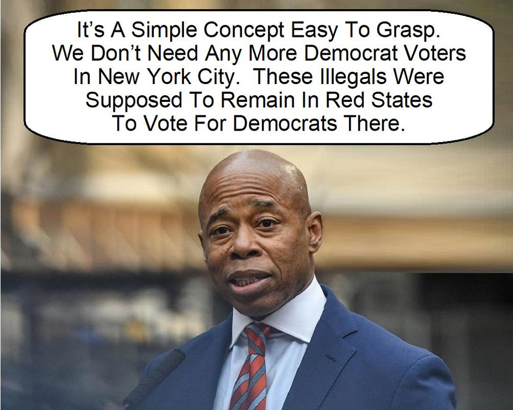 But the money, oh the money. New York City Mayor Eric Adams now says these illegals “will destroy New York City.” Good, and good riddance.