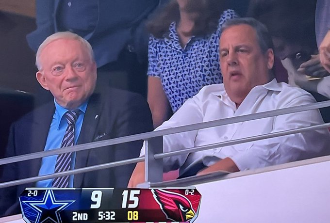Over the weekend Taylor Swift went to Arrowhead Stadium to watch Travis Kelce play. Maybe you’ve heard about it? I know not many people are talking about it happening, but she did. So when the Cowboys’ broadcast showed Chris Christie sitting next to Jerry Jones a joke popped into my mind.