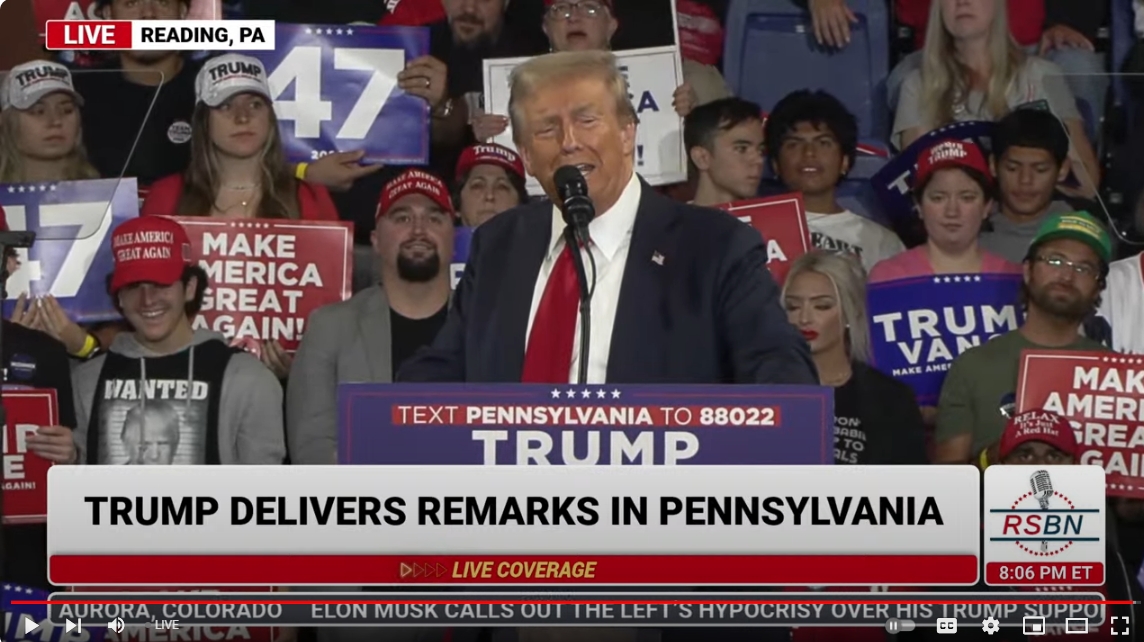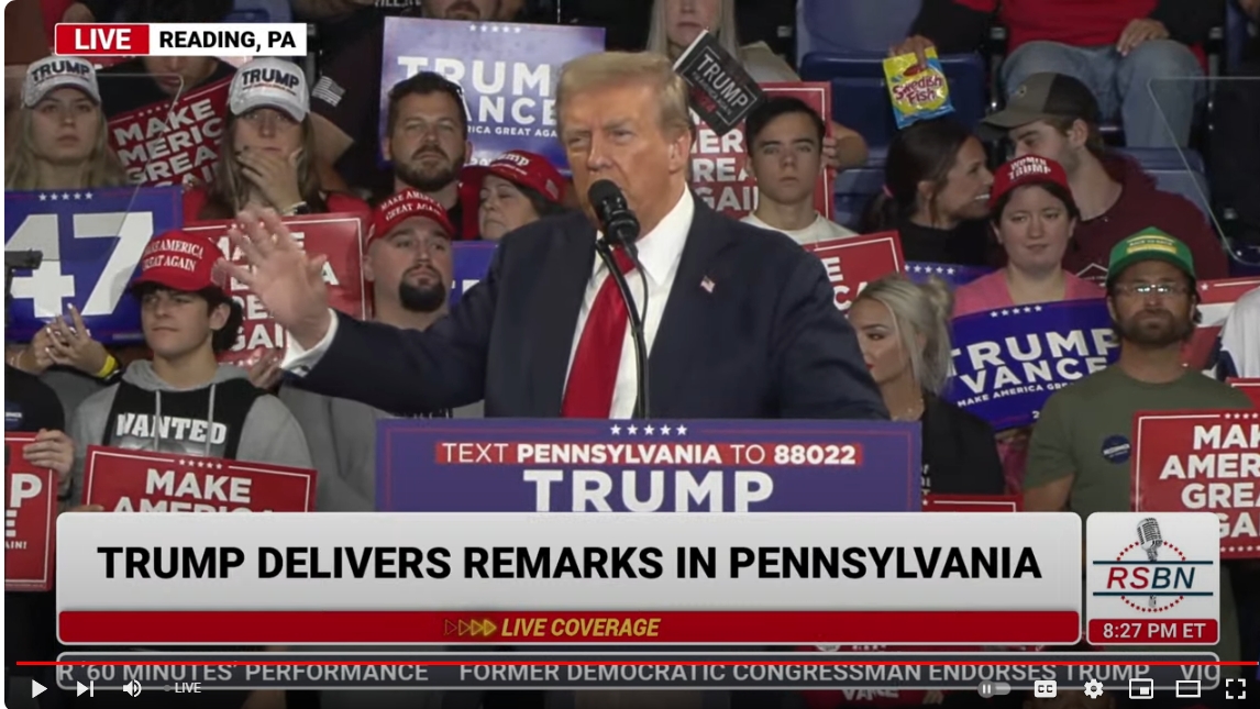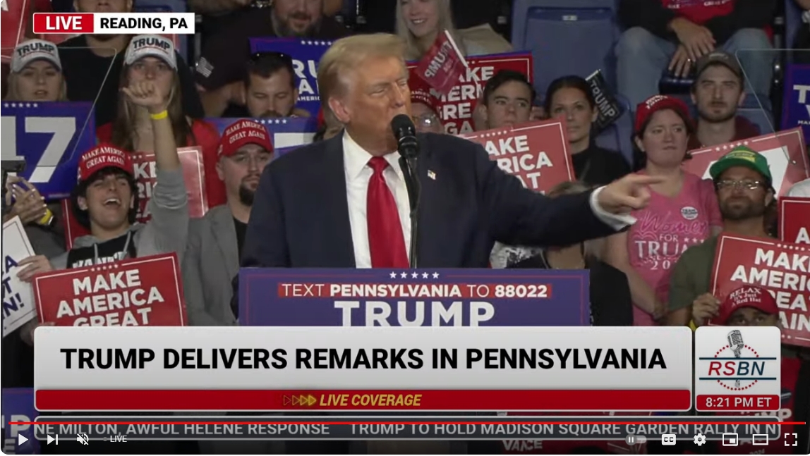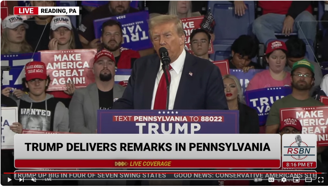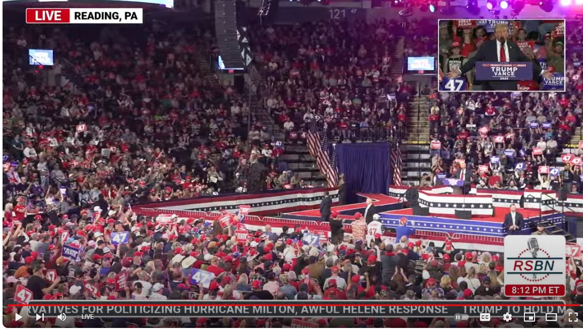 Massive ovation for President Trump in Reading, PA.