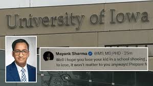 After a Trump supporter told the cardiologist to 'stay mad' during a political conversation on X, Sharma unleashed a vile response.