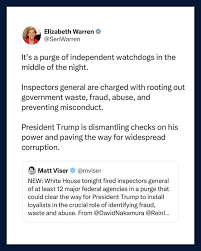 In a decisive move that has sent shockwaves through the political elite in Washington, President Trump has dismissed 17 inspectors general.